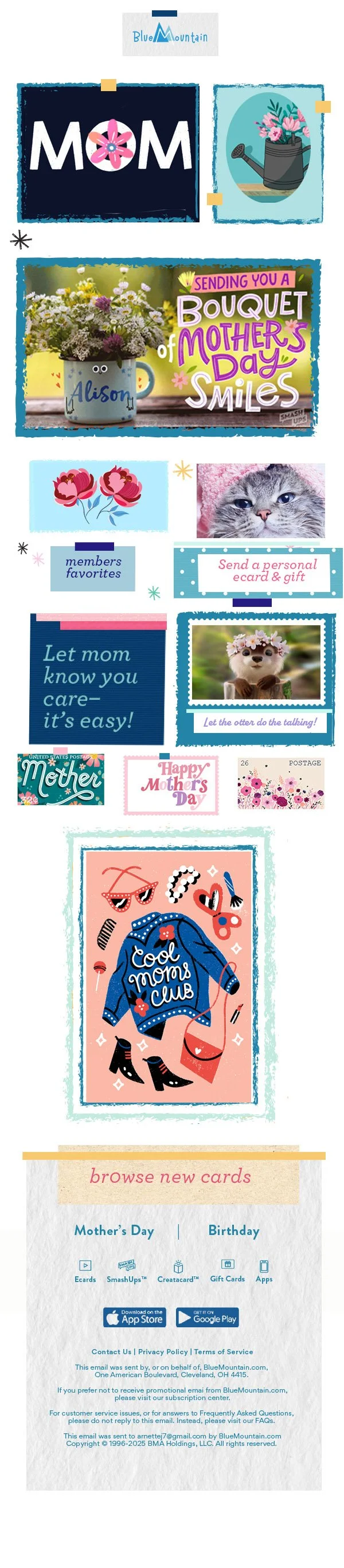 The audience for Blue Mountain is similar to American Greetings’ including millennial parents and grandparents.