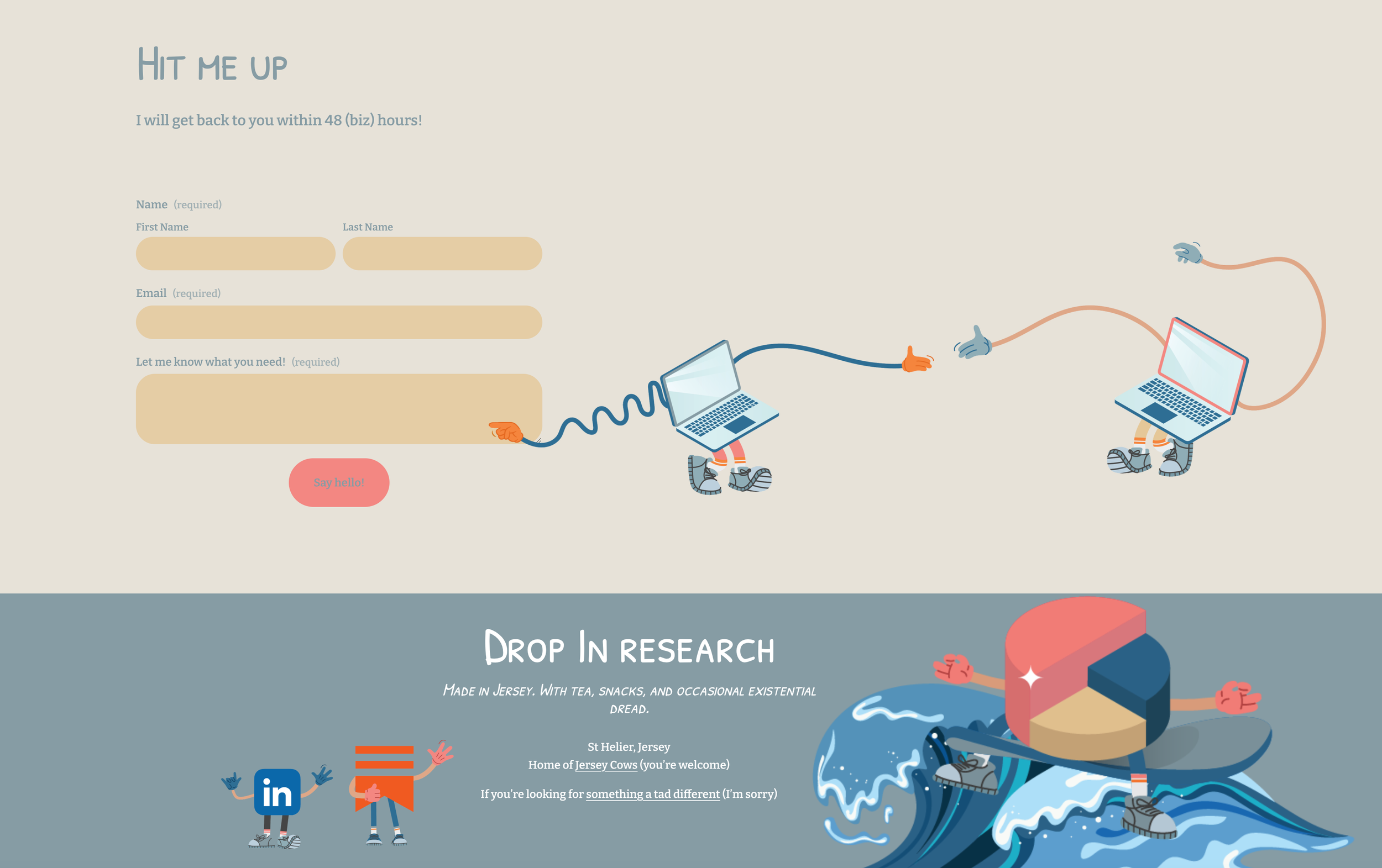 Not wanting to be anything close to bland, beige, or corporate, the focus was on creating an identity that celebrated her approach, personality, her love of surfing, and desire for her clients to feel cared for and relaxed in a weird world of research.