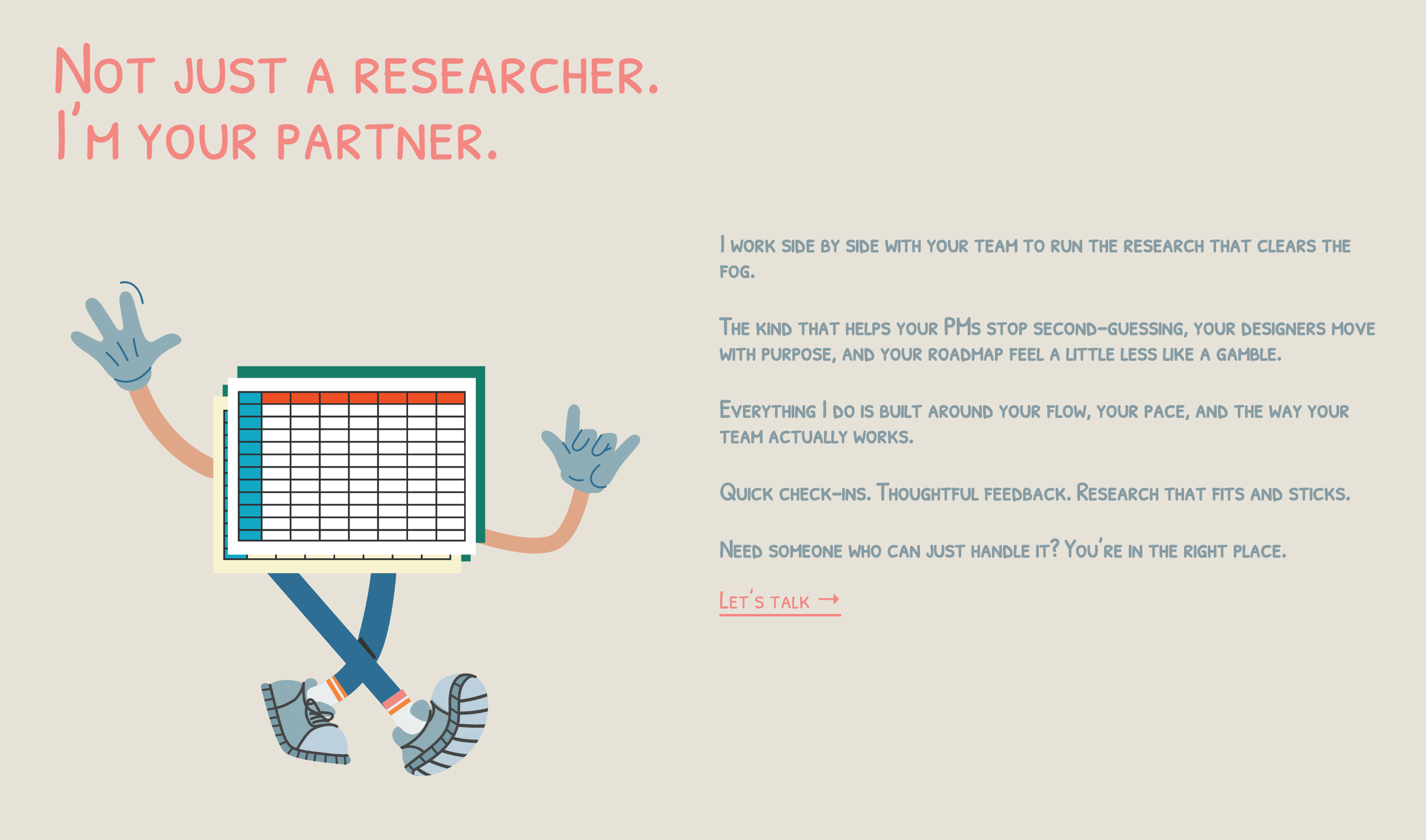 Her website is like a little world, inviting you into a space where research is fun, human, and welcoming.