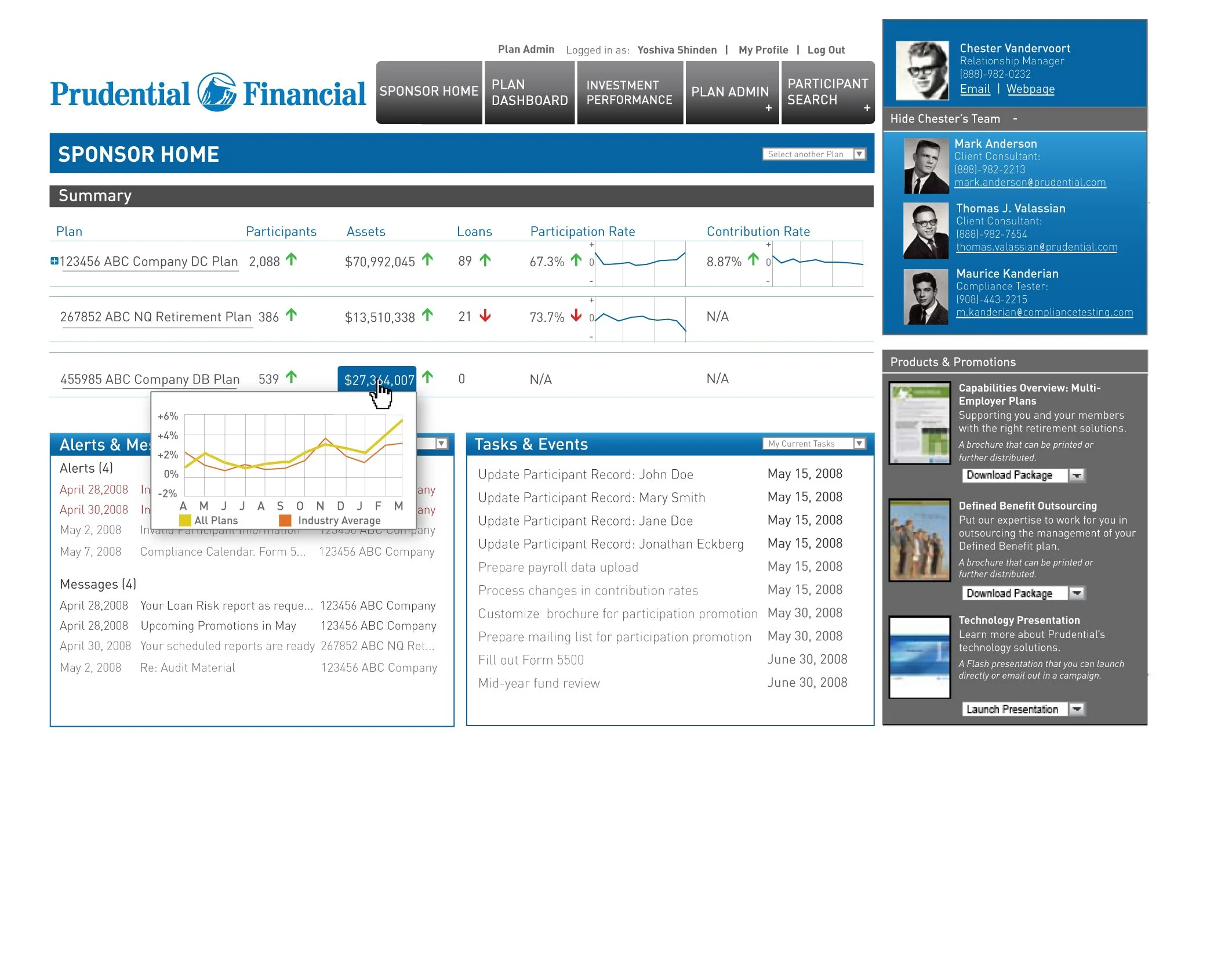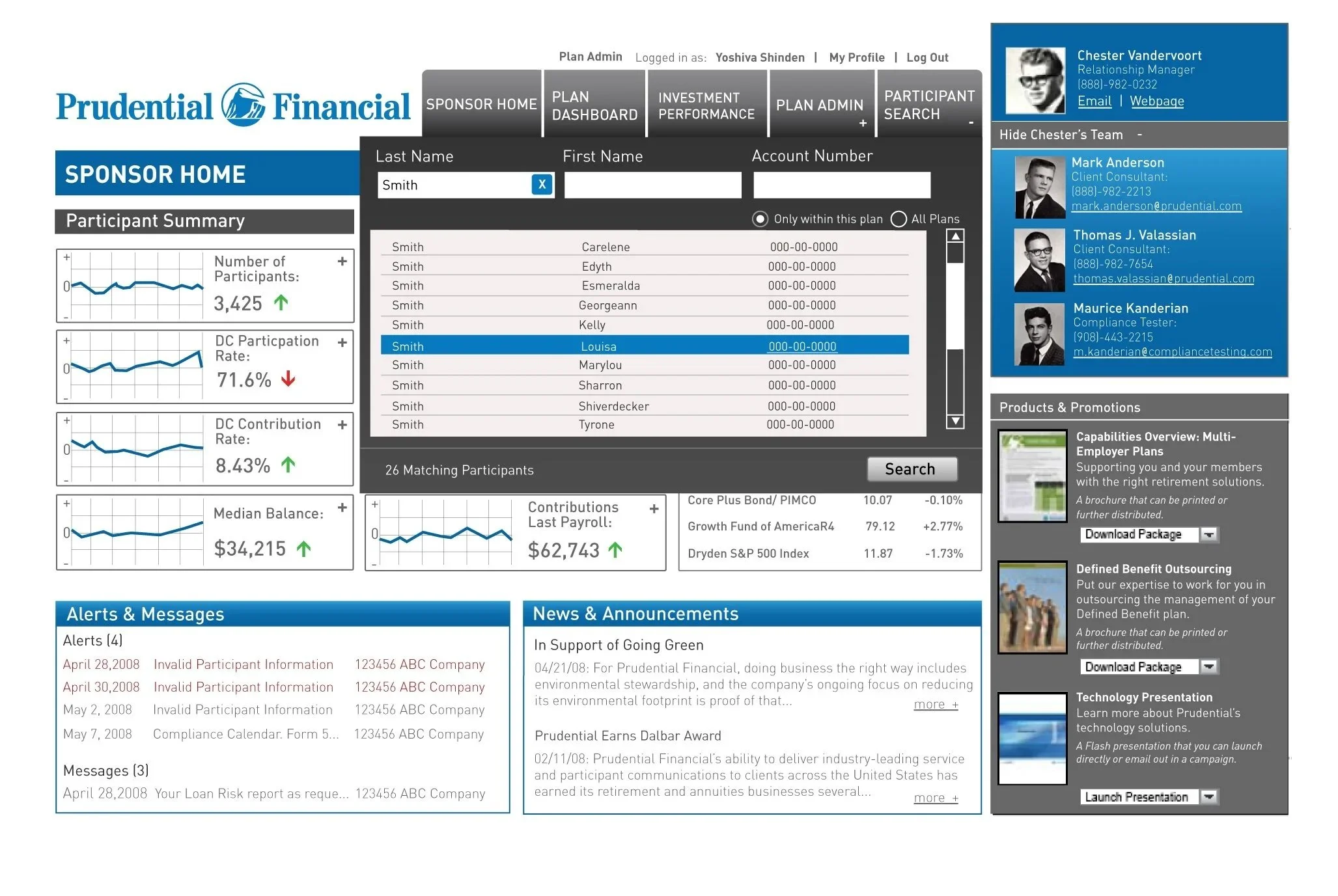 Prudential Financial needed to reimagine the Participant and Plan Sponsor Dashboards, creating a more intuitive interface for complex data while ensuring clarity, usability, and visual consistency across their internal systems.